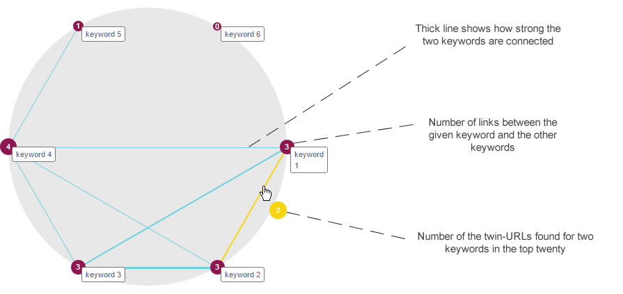 realseo.tools compares the top twenty Google results for the specified keywords. When same URLs are found for different keywords, it means, that different keywords refer to one subject, so all of them can be used on a single page.